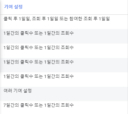 보통은 성과 추적 방식 정도로 생각하기도 하고, META 광고 관리자에서 확인할 수 있는 워딩은 "기여 설정"이다. 브랜드 사에서 현제 집행하고 있는 광고 캠페인의 수이며 각 캠페인에 할당된 기여 설정들이다.
