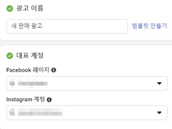 노출될 페이스북, 인스타그램 계정을 선택하고 여기 광고 이름 역시, 규칙에 맞게 세팅해주시면 됩니다.