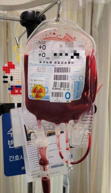 그러던 중 7주 차 항암치료가 진행되며 15번째 수혈을 받게 되었다.