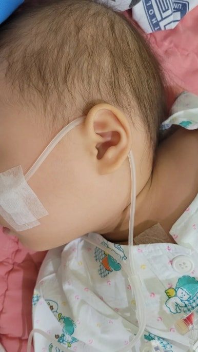 코에 줄을 넣어 석션을 하였고 팜컵을 가져와 아이의 가슴을 팡팡 두드렸다. 조금이라도 숨쉬기 편하라고 턱 밑에 수건을 받쳐 턱을 들게 했다.
