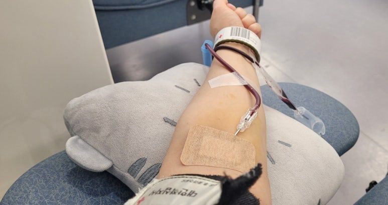 작은 혈액팩이 채워지는 동안 뻐근함, 차가움, 저림 같은 감각이 느껴지면서 갑자기 눈물이 났다. 병동에서 보던 생명의 주머니에 나도 동참하고 있다는 뿌듯함 때문이었다.