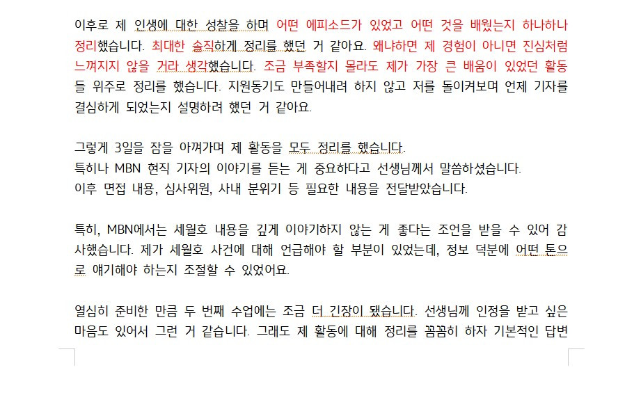 기자공채는 3번째였고, 기자로서 본 면접 자체는 이번 MBN이 처음이었습니다.
