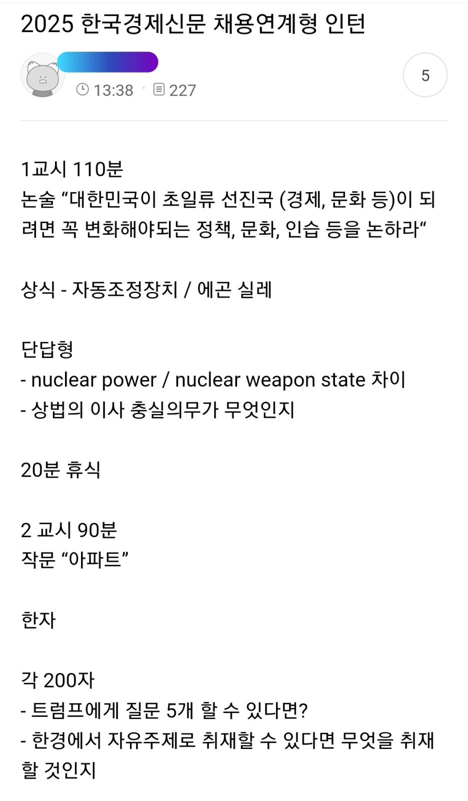 난이도 하(下)라...솔직히 코멘트 할 것들이 별로 없는 것 같네요ㅠㅠ 다만, 추세가 점점 기자 직무를 할 줄 아는 신입을 '대놓고' 원한다는 건 알겠네요:)