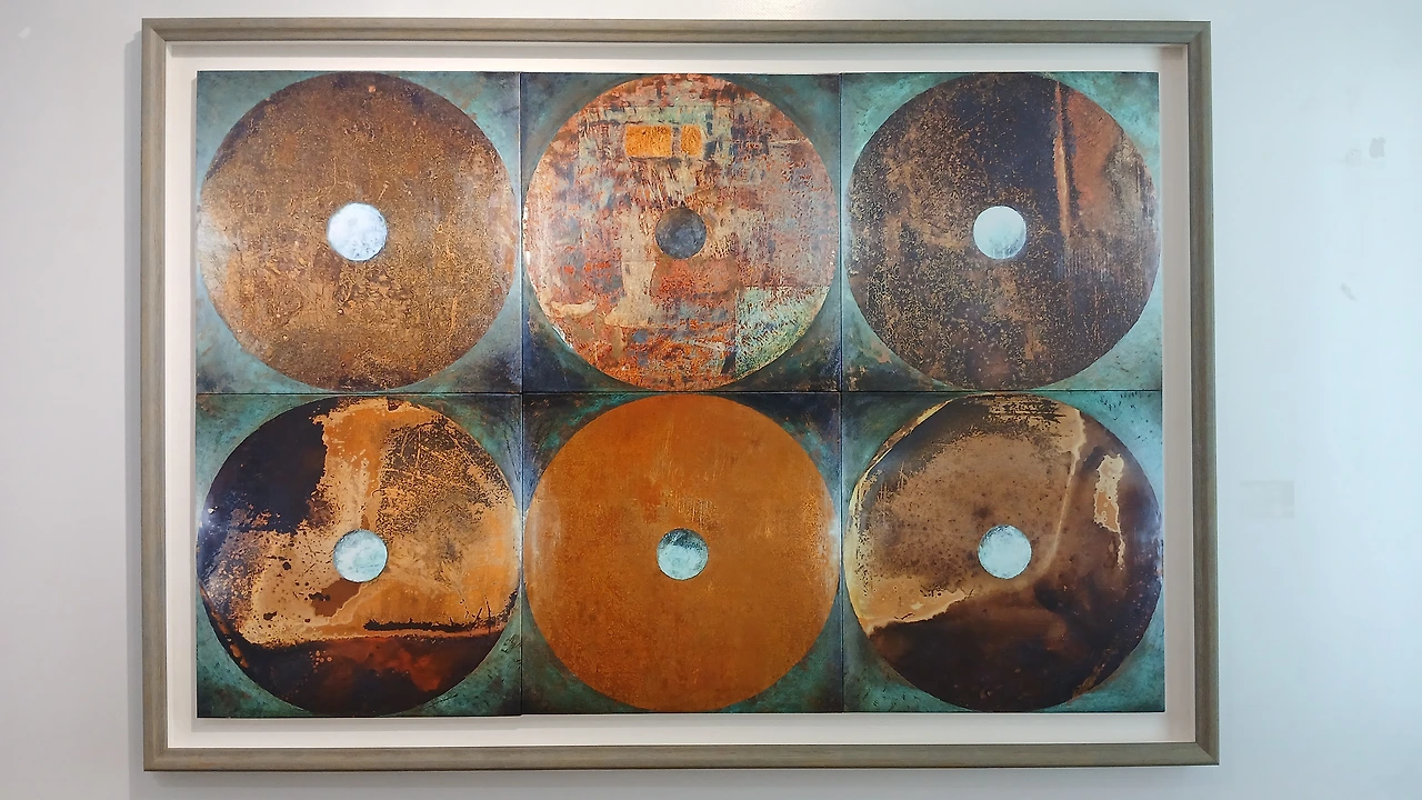 이쯤에서 자연스럽게 원형과 ‘6’이라는 형식이 떠올랐다. 1996년 중앙비엔날레 대상작의 이미지가 겹쳐 보였기 때문이다. 각각의 둥근 원 안의 중앙에 작은 구멍이 뚫린 여섯 개의 원형.