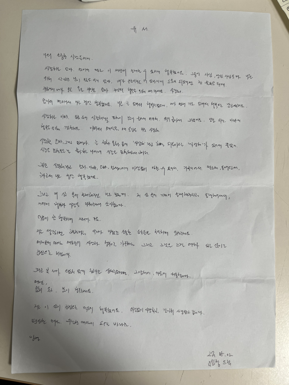 (**아래 유서는 정말 죽으려고 작성한 유서가 아니며, 교육 중 필요에 의해 작성한 유서임을 밝힙니다. )