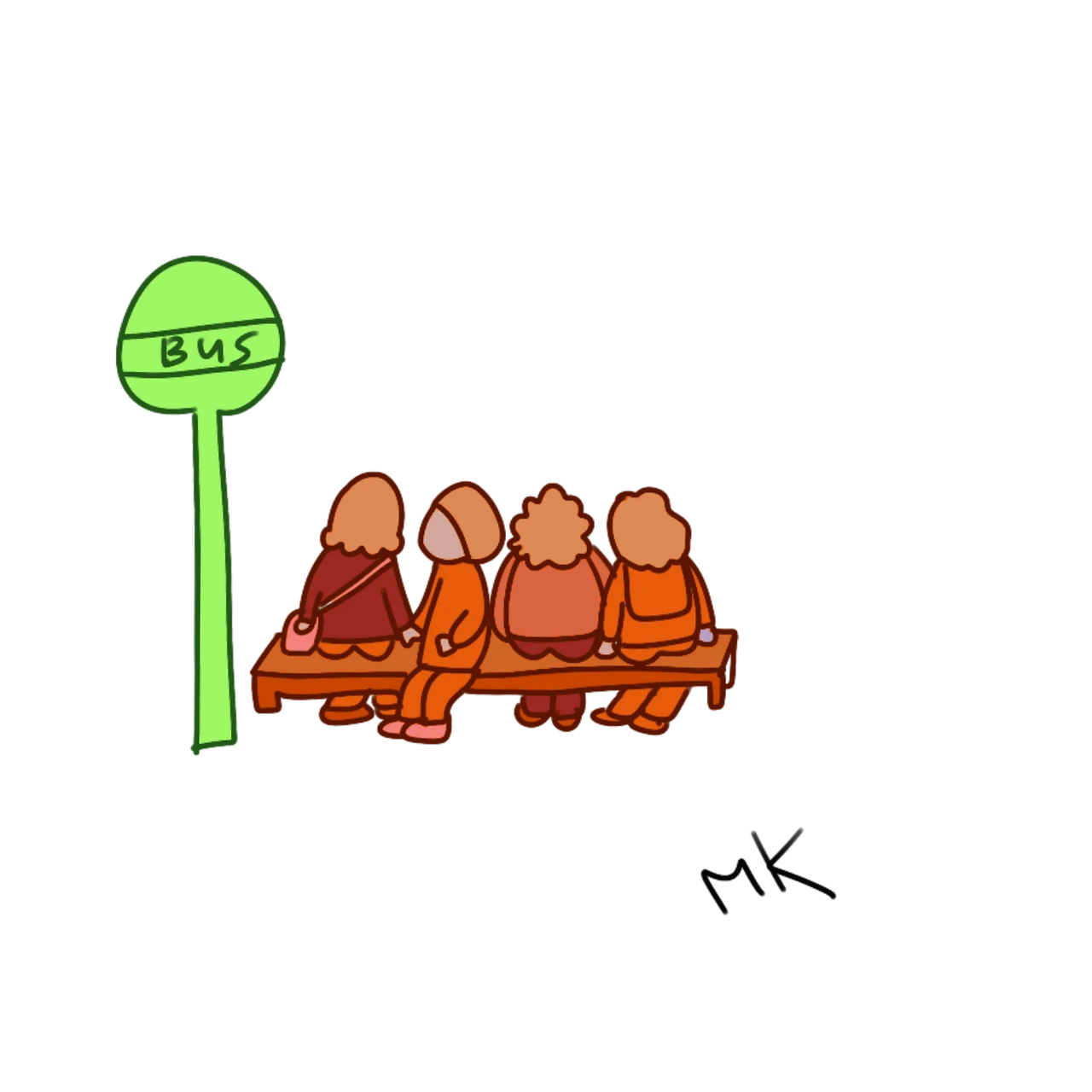 보통 버스정류장은 "왜 버스는 안 오는 거야?" 하면서 무표정한 얼굴을 하고 있거나 매연이나 자동차 경적소리에 경직된 몸을 하고 있는데 아주머니들은 놀러 나와 어느 카페라도 앉아있는 듯 미소를 띠고 있었다.