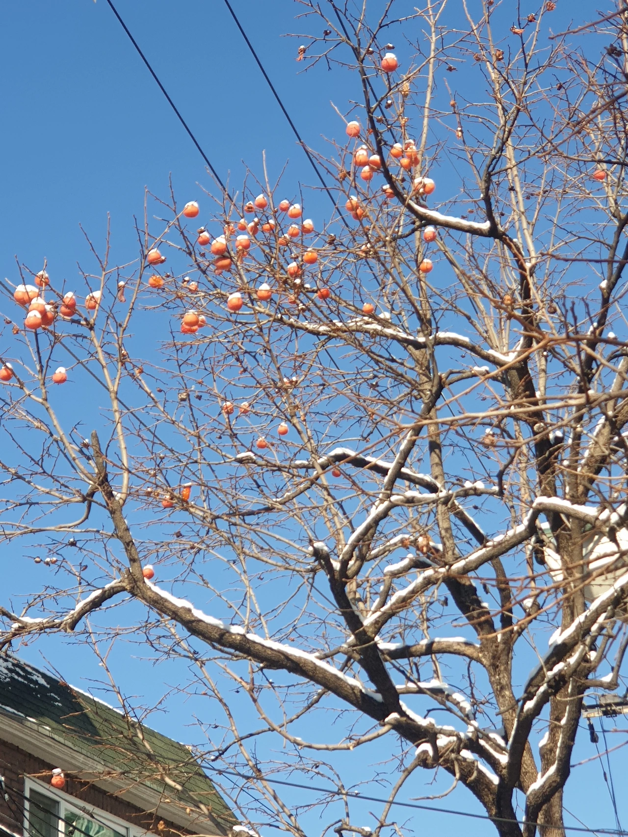 감나무에도 살포시 내리고 동네어귀에 눈사람도 예뻐요