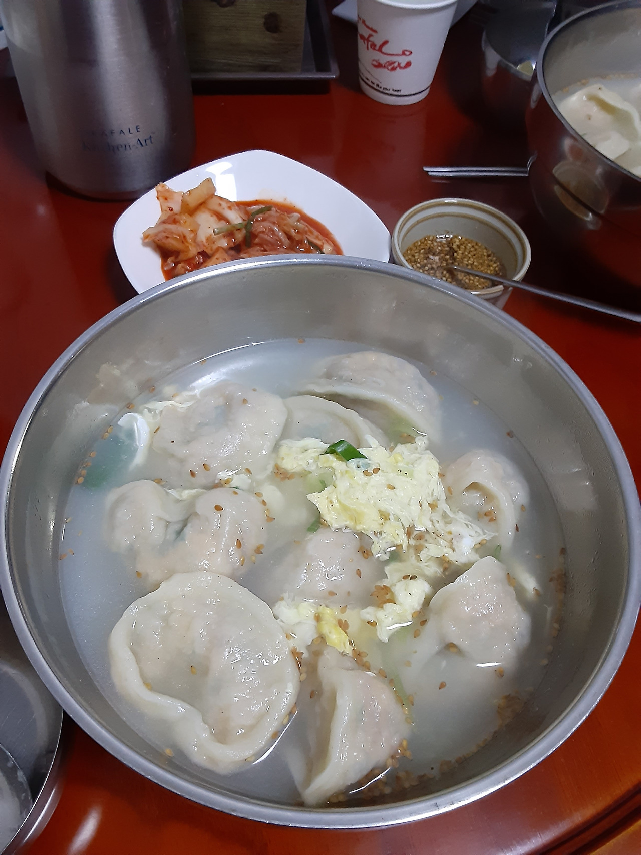 자리 잡고 만둣국을 시키고 있으니 조금 있다가 조용한 분위기의 할아버지 할머니 내외가 들어오셔서빈 마지막 상에 앉으셨다.
