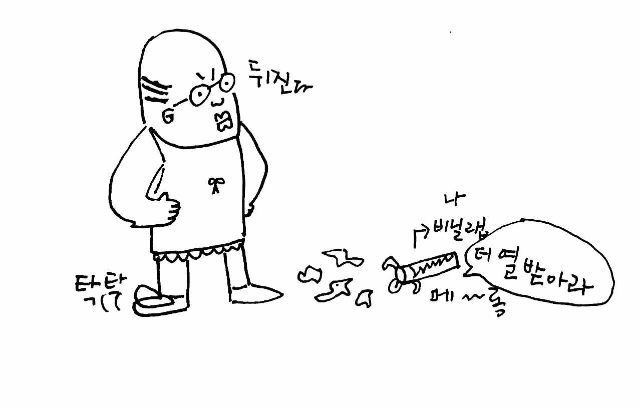 다음날 시댁 식구들이 와서 어젯저녁 비닐 랩에게 화낸 이야기를 하니 동서도 한마디 한다.