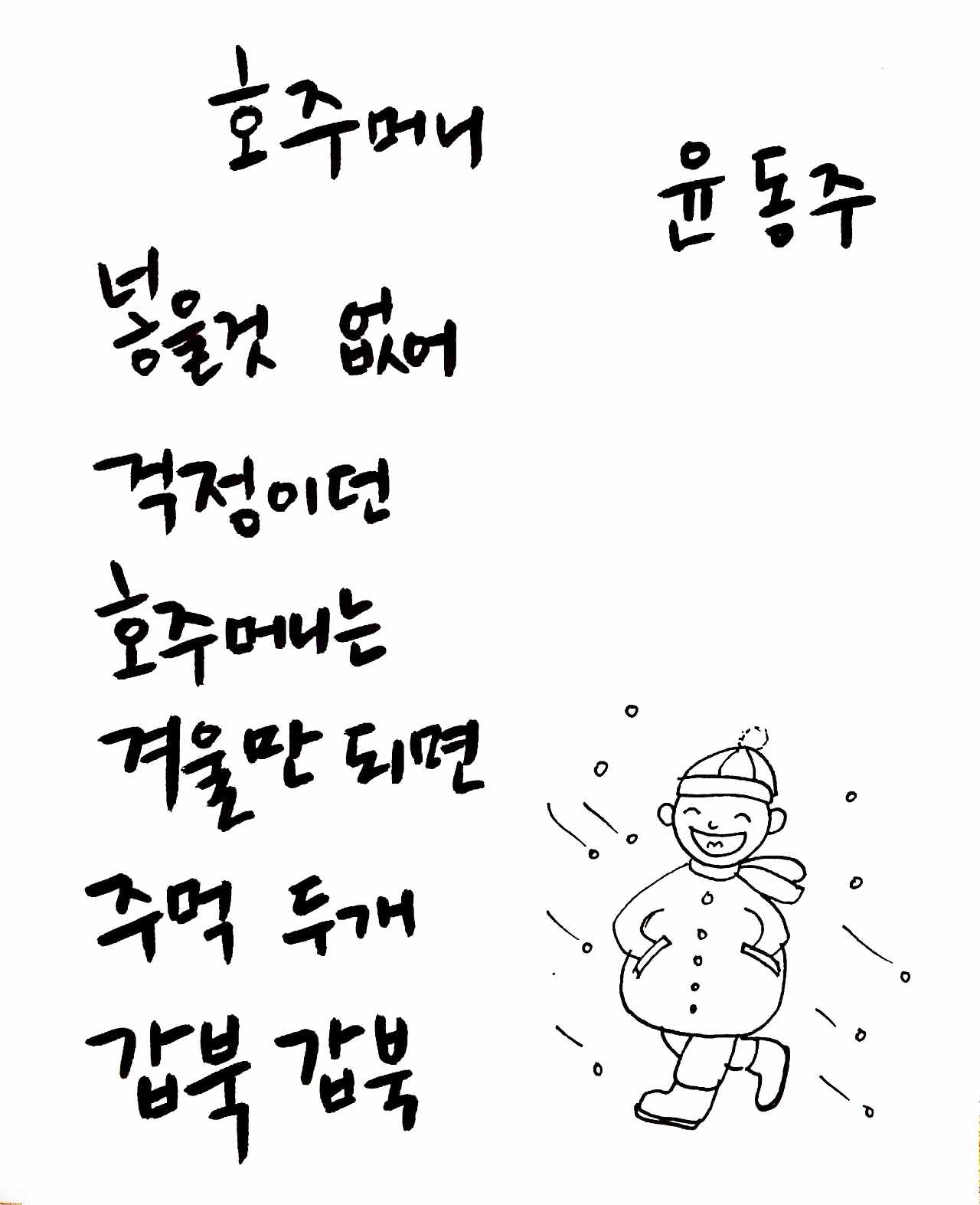 윤동주 시의 서시 자화상 별 헤는 밤 등을 알고 있었는데 호주머니