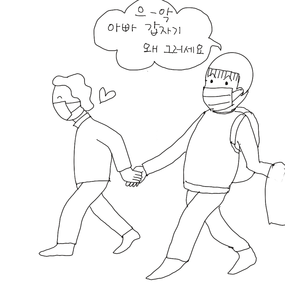 길가다가 어느새 자신보다 더커 버린 아들이 자기 갈길 묵묵히 걸어가는 걸 보고 울컥해서 갑자기 손잡고 걷는 제부 모습
