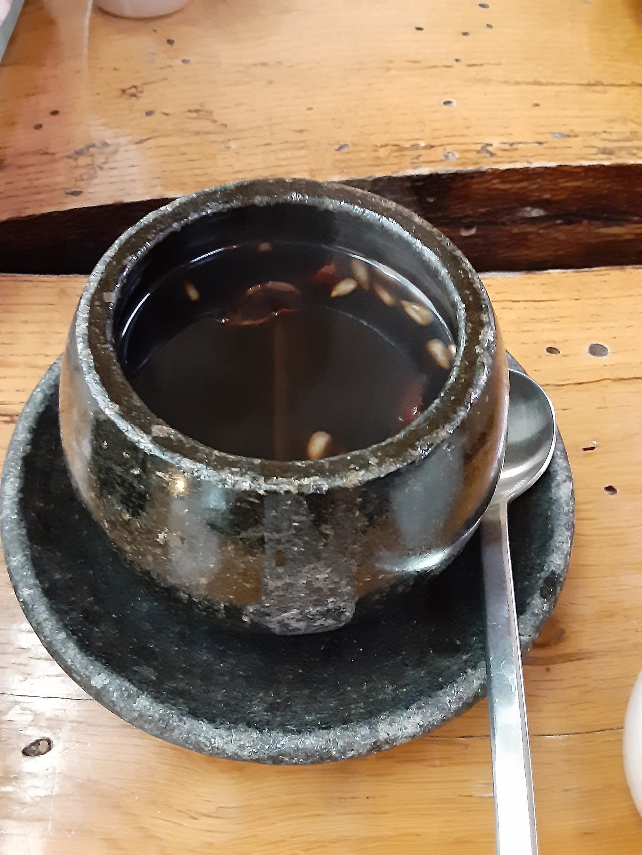 둘러보기에는 날씨가 안 좋아서 절을 되돌아 나서기로 했다. 돌아오는 길에 선운사에서 가까운 정읍 쌍화탕 거리에서 견과류 가득한 쌍화 탕을 먹으니 온몸의 한기가 나가는 것같이 좋다.