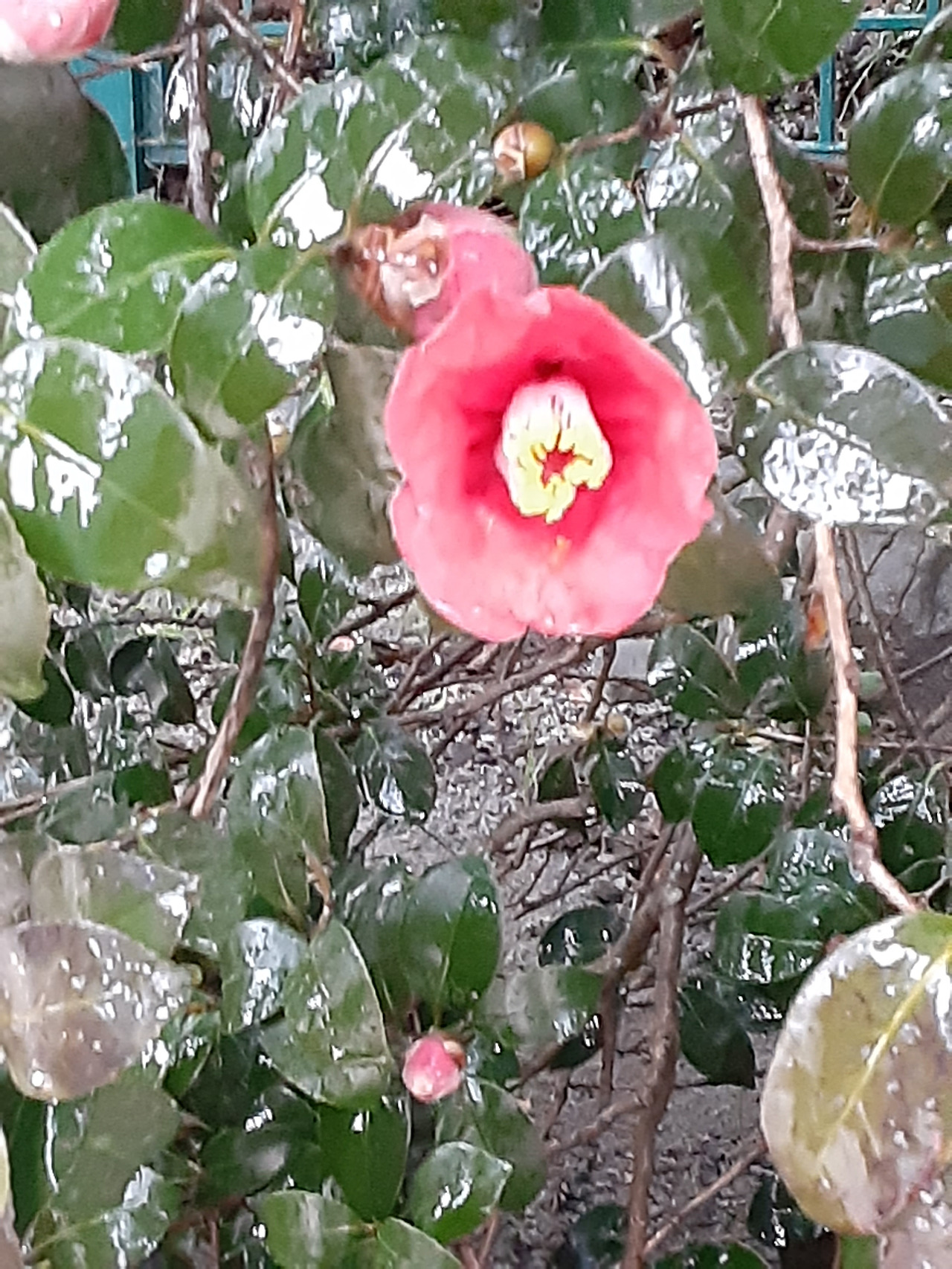뒤뜰로 올라가서 동백꽃을 찍었는데 빗물 때문에 꽃이 예쁘게 나오지 않았다.