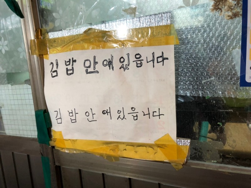 맞춤법 틀린' 김밥 안애 있습니다'의 어묵김밥은 다음에 올 때 먹어 봐야지