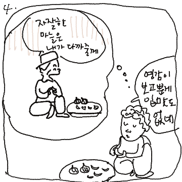 tv에서 홀로 남겨진 할머니가 돌아가신 할아버지를 그리워하는 인터뷰를 보고 만화로 그려 봤습니다. 살아가는 것이 시이자 유머이기도 한 것 같습니다.