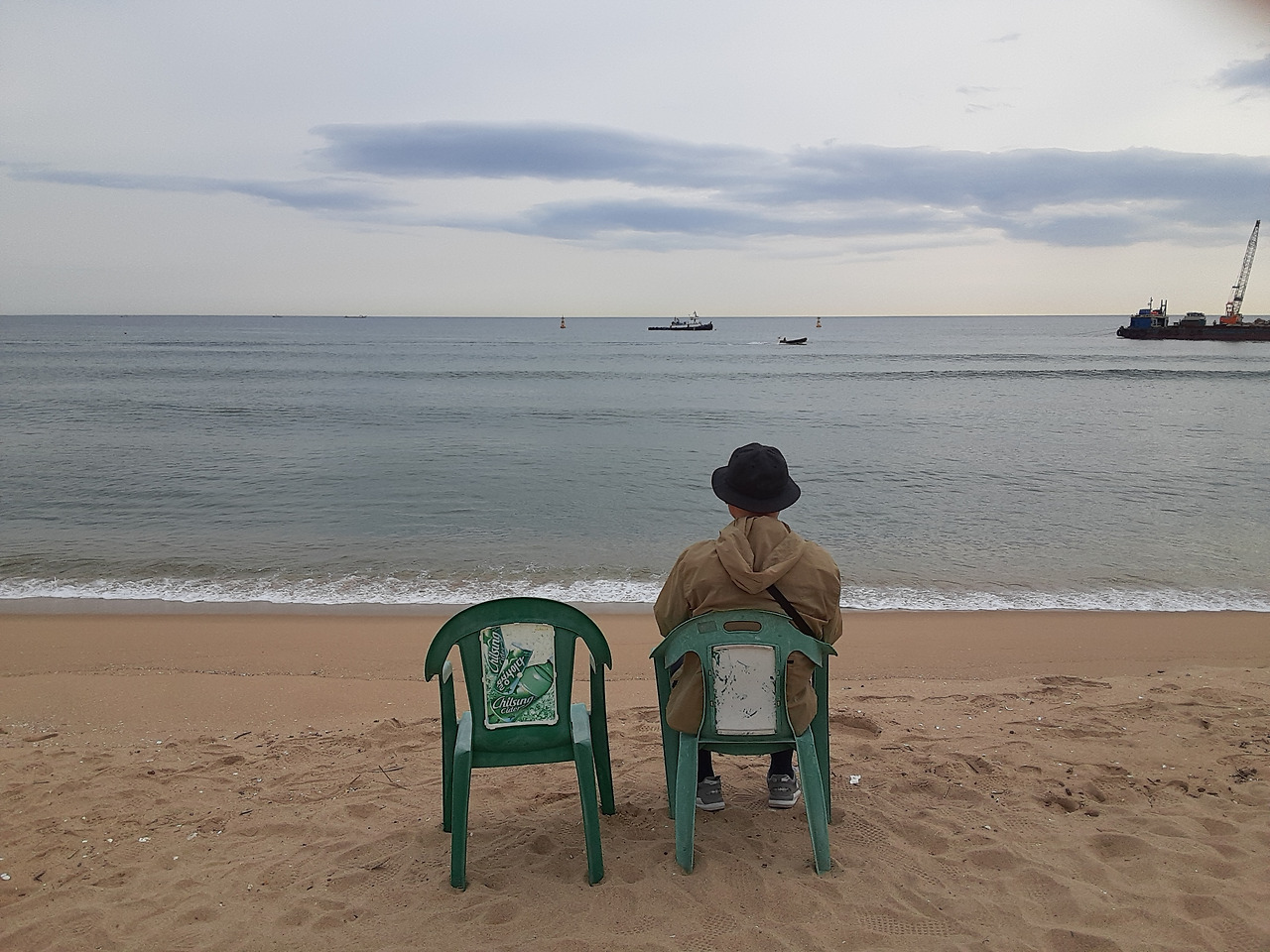 바닷가에 앉았던