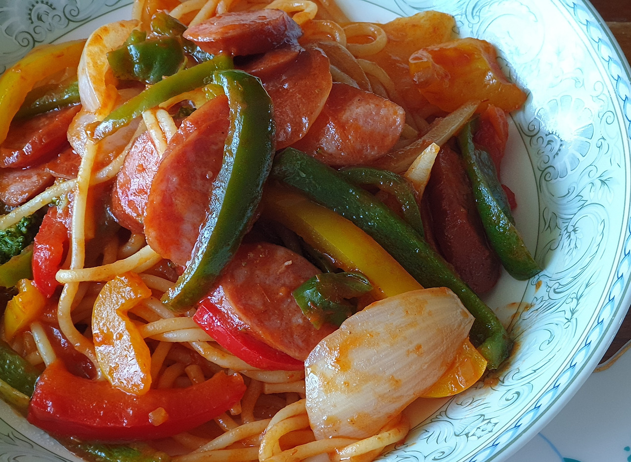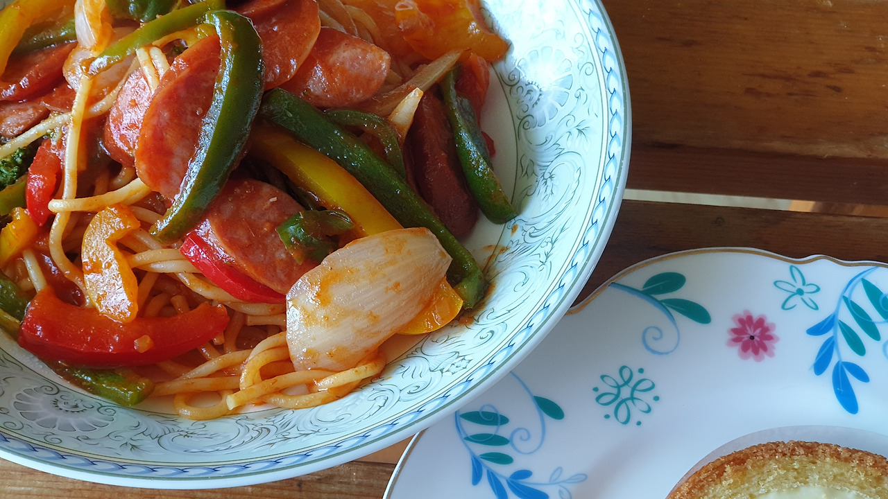 냉장고를 열어보니 소시지와 파프리카 양파 등이 있어서 이태리에 이태리타월이 없듯 나폴리에는 없다는 나폴리탄 스파게티를 만들기로 했다. 나폴리탄 스파게티는 처음 일본에서 토마토소스를 이용해서 만든 만만히 쉬워 보이는 요리이다.