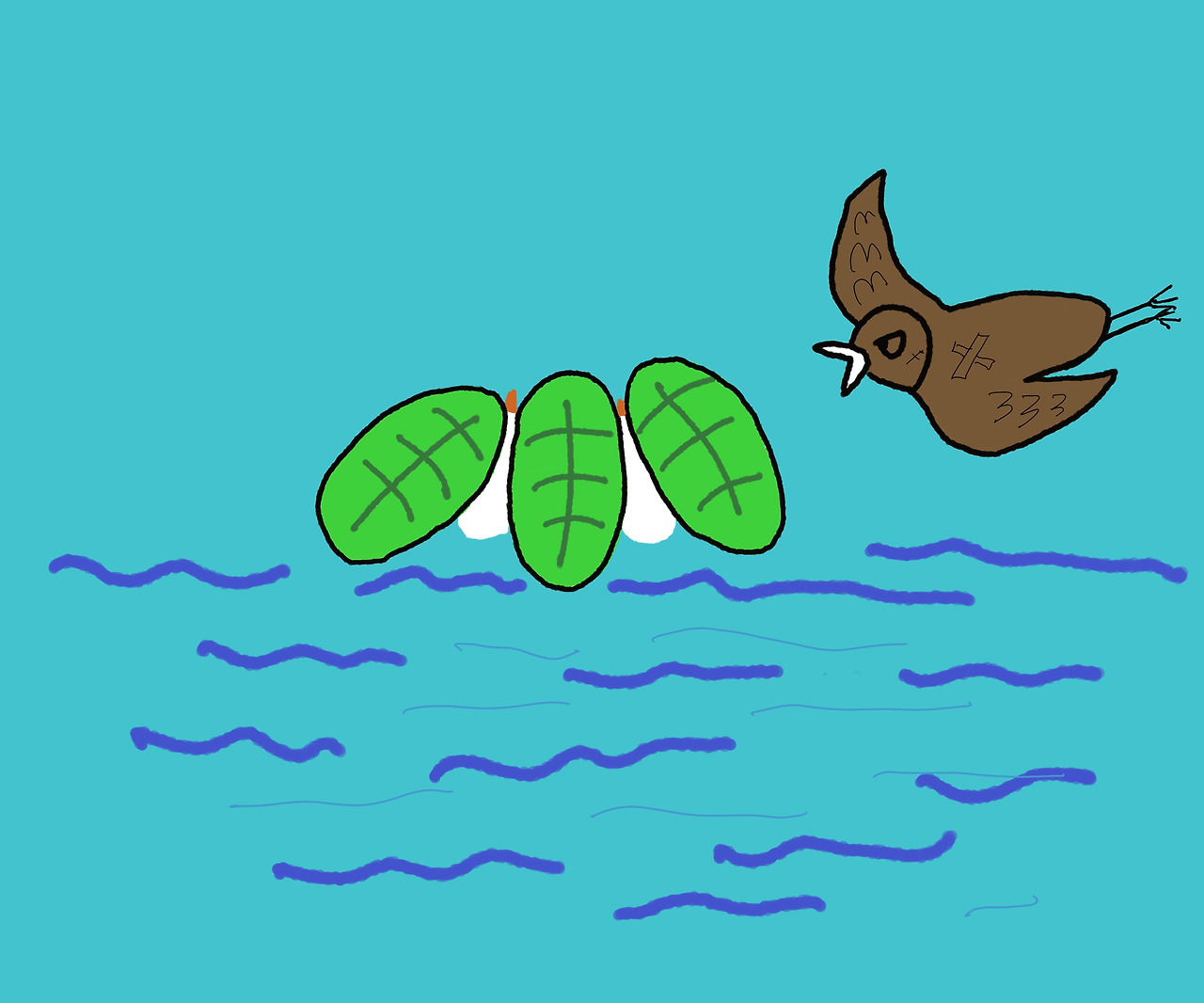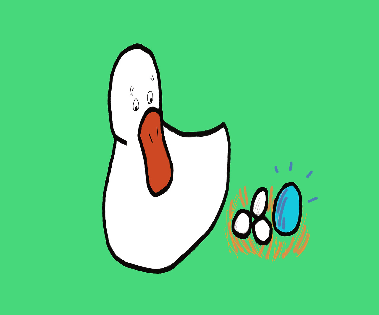 "헤엄 치고 고기 잡는 것은 오리가 해야 할 덕목이야 그리고 육식을 좋아하는 맹금류 새는 위험하기 때문에 숨어야 한단다. 너는 왜 하라는 데로 안 하는 거니?"