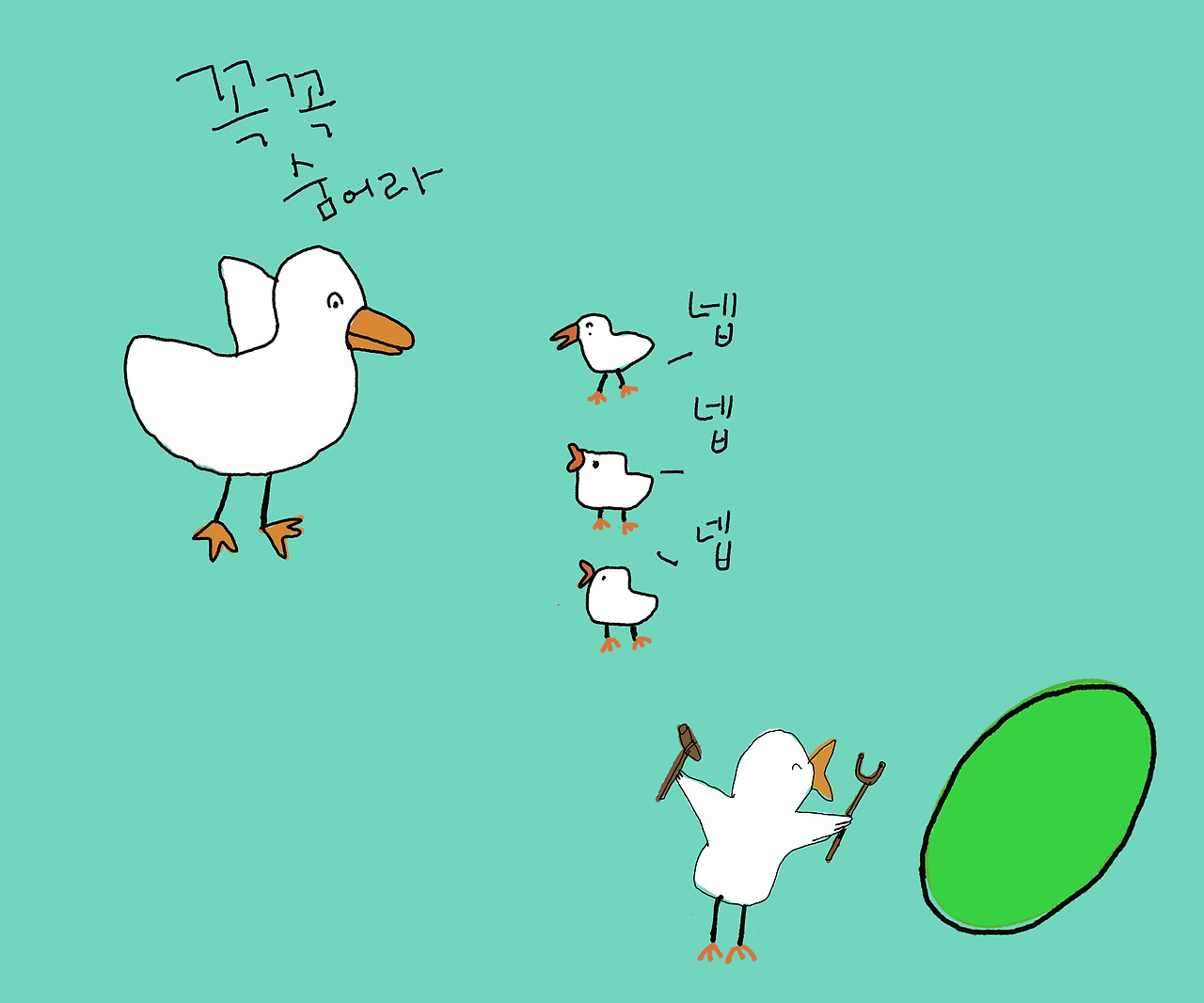 엄마 오리와 형제 오리들도 지켜낸 것이었어요. 더 이상 도망가며 살지 않아도 됐어요