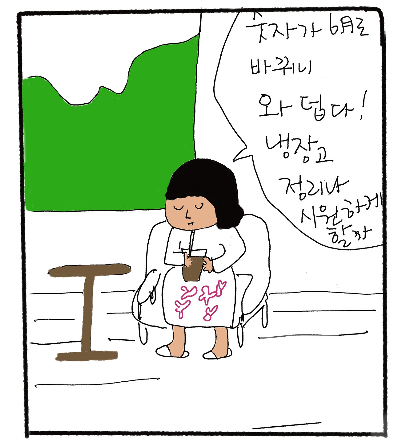최소함의 식재료를 담고 있는 냉장고를 생각하니 머릿속까지 시원해지는 듯했다.