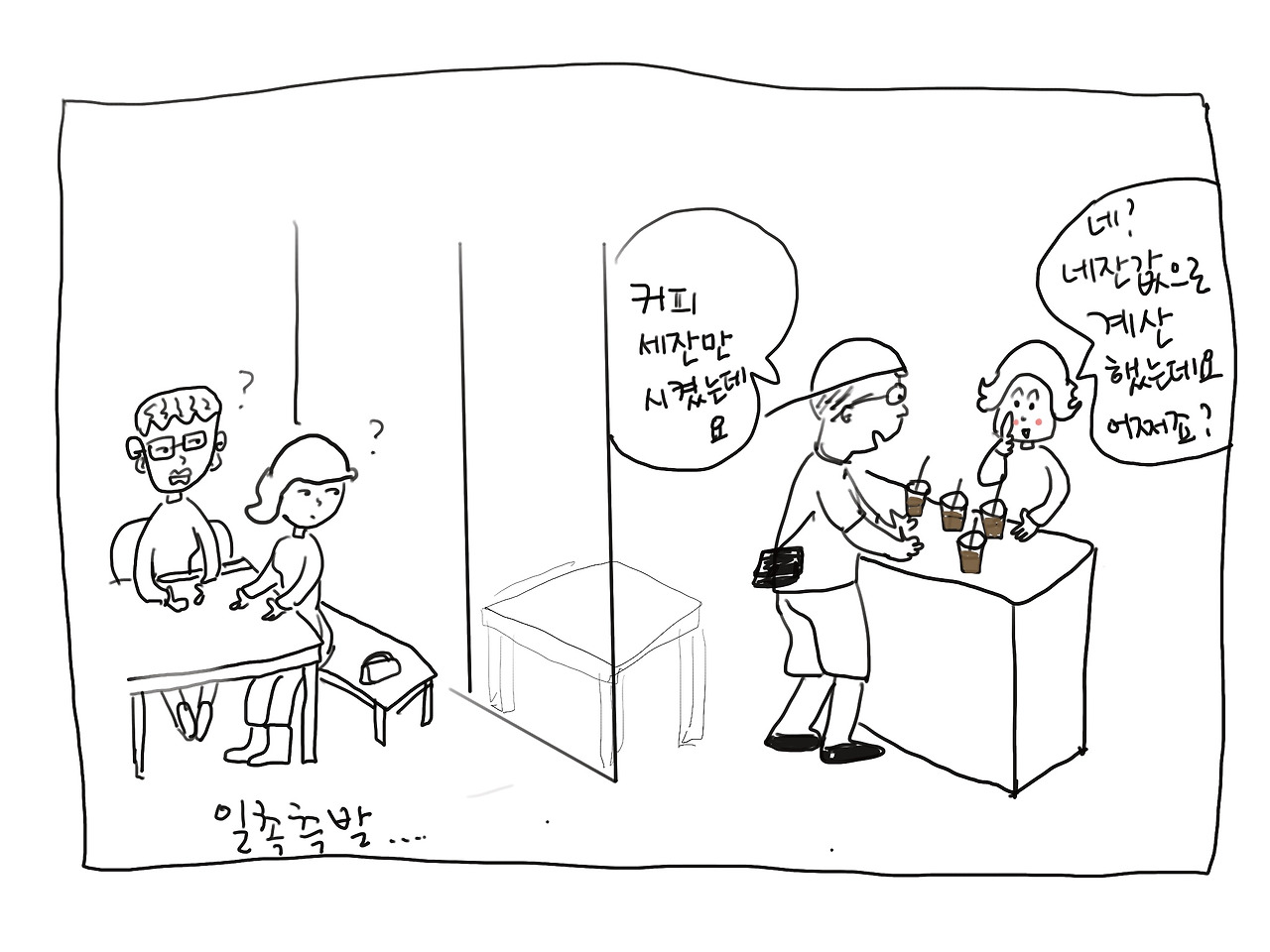 시누이랑 만나는 카페에서 남편과 시누이는 아아(아이스 아메리카노) 나는 아라( 아이스 라테)를 주문하고 기다리는데 진동벨이 울렸습니다.