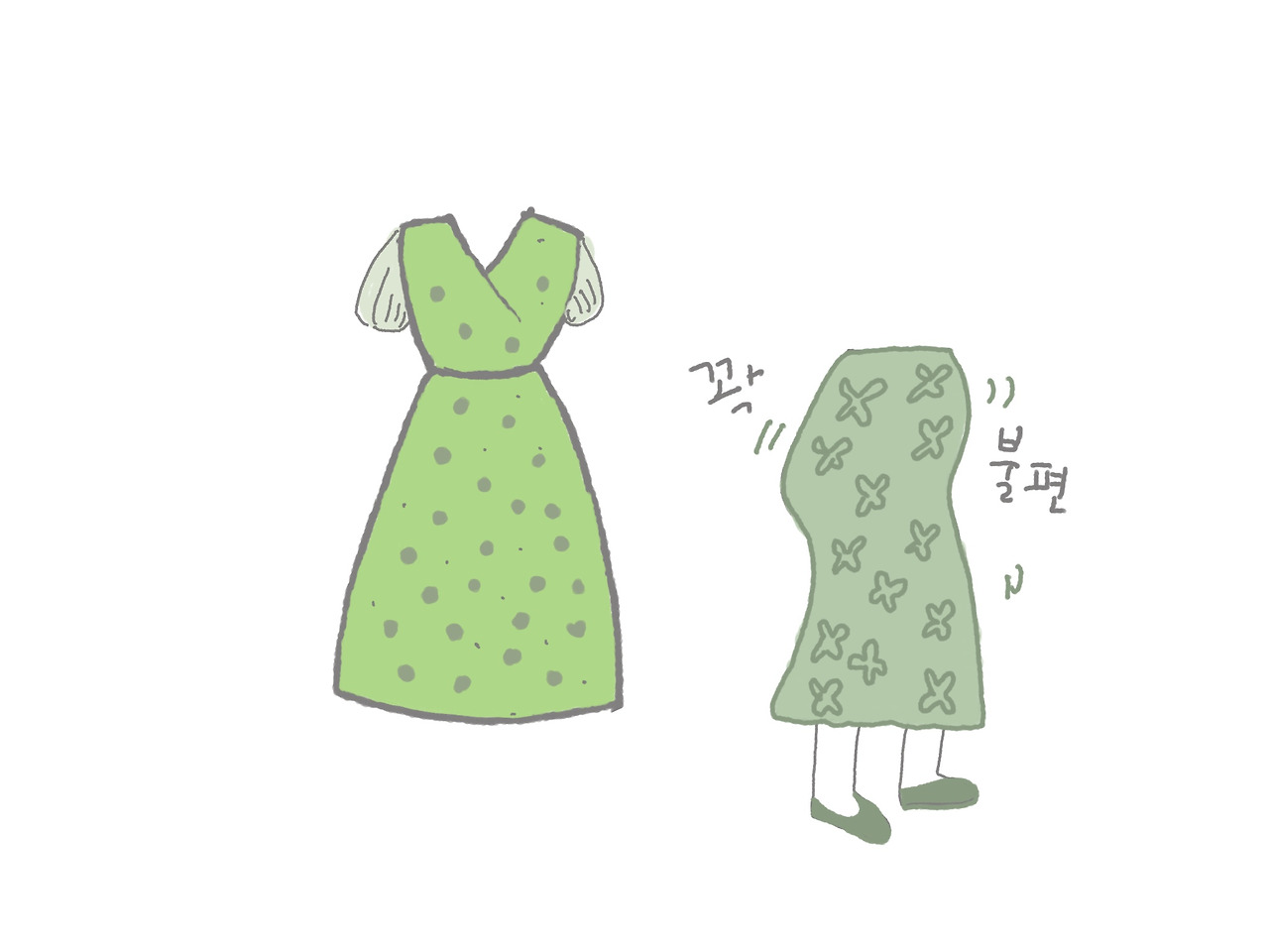 원피스의 입장에서 생각해보면 "그래 네 팔뚝 굵다. "처럼 "너는 왜 이리 허리가 굵은 거야" 할 수 있을 것 같다.
