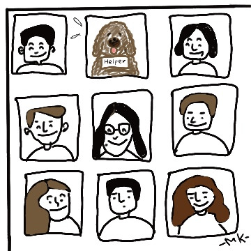 며칠 후 보이스톡으로 독 헬퍼가 하는 일을 물어봤더니 몸이 불편하거나 간질을 앓는 친구들 옆에서 가만히 수업에 동참하는 거라고 한다. 개가 예쁘니 반 친구들도 왕따 당하기 쉬운 친구들 곁으로 온다고 하는데 옆에 누군가 옹호하며 있는 것만으로도 든든한 백그라운드가 되는 것 같다는 생각이 들었다.