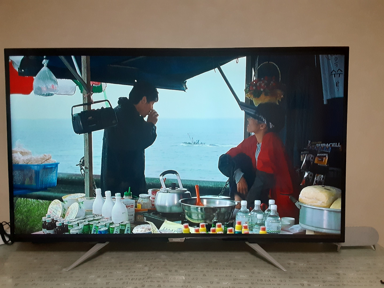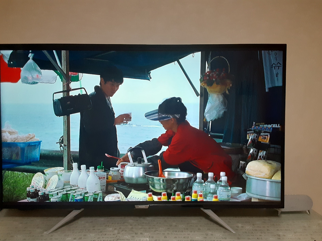 빨강 티를 입고 볼우물 파지게 웃는 장면이 있었는데 지금 다시 보니 실은 빨간색은 커피 파는 아줌마 조끼고 죽기 직전의 절망의 영호는 초라한 작업복이었다.