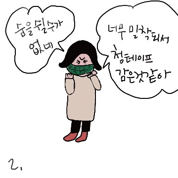 나와 맞지 않는 크기의 마스크가 얼굴과 너무 밀착되어서 숨 쉴 공간이 없을 정도로 작았기 때문이다. 역시 공짜로 무얼 받을 때는 조심할 일인 것 같다.
