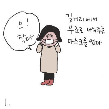 길거리를 지나가다 무슨 단체에서 마스크를 무료로 나눠주니 사람들이 "역시 공짜는 좋지" 하며 와글와글거렸다.