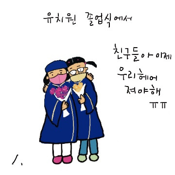 유치원 졸업식에서는 여기저기서 이제 선생님하고