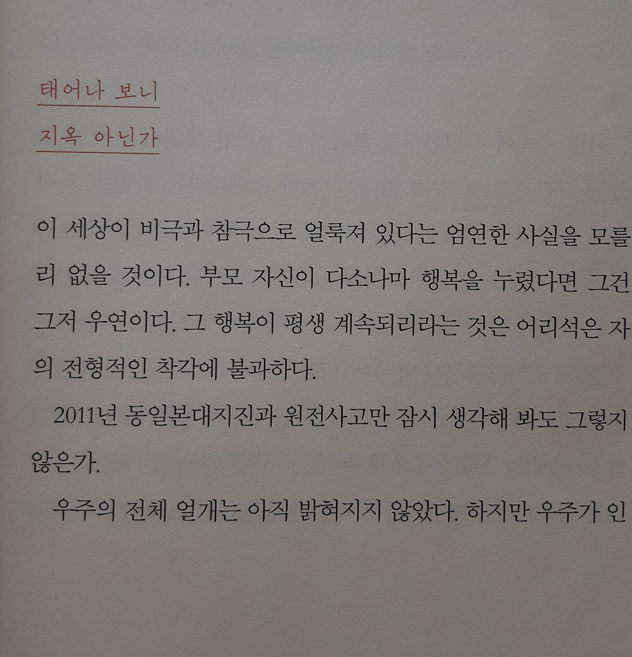 일본 작가 미루야마 겐지의 책 '인생 따위 엿이나 먹어라'에서 '태어나보니 지옥'이라더니 그 말에 이렇게까지 공감할 줄이야 몰랐다.