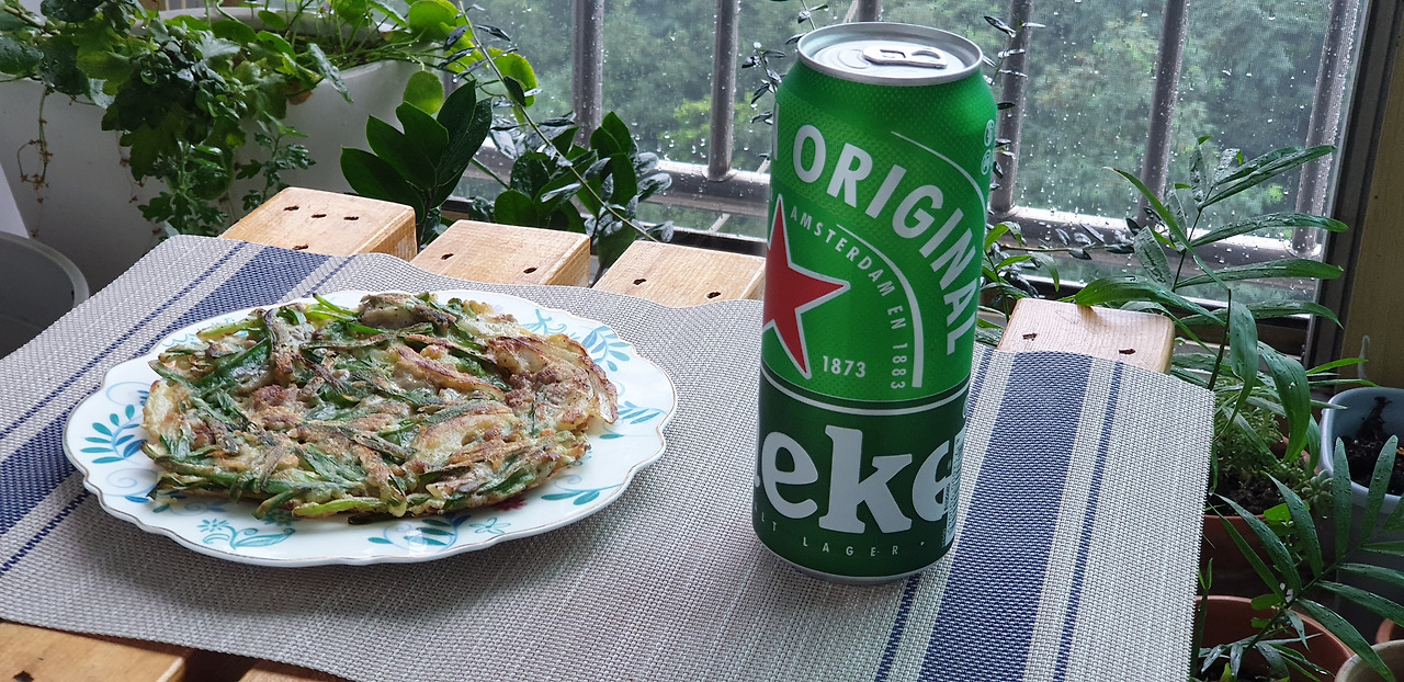 비 그치기 전 부지런히 부추전을 부쳤다.