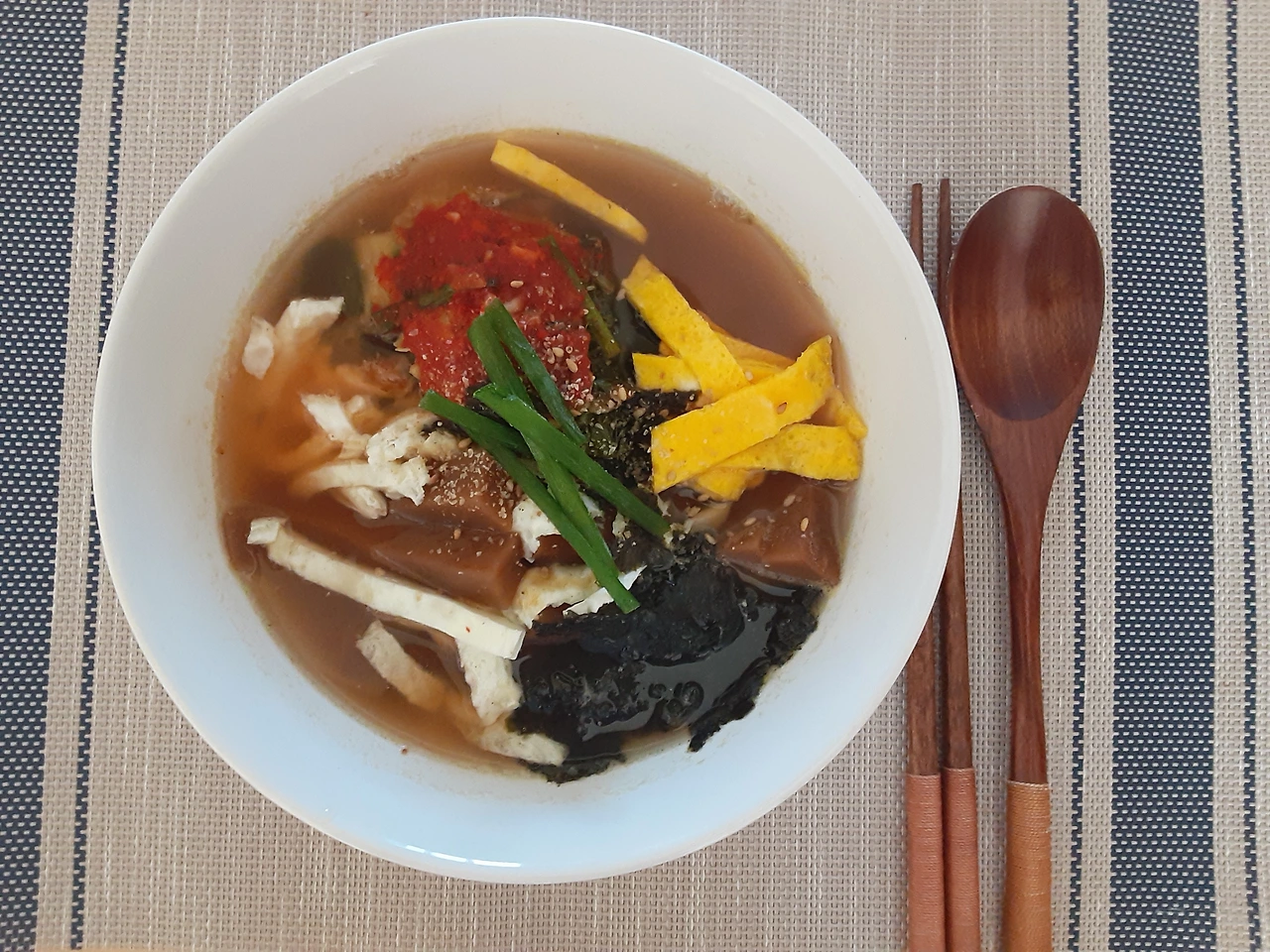 육수는 여름에는 찬 육수가 좋겠지만 초 겨울이니 따뜻하게 먹으려고 채수와 조선간장 액젓 소금으로 간했다.