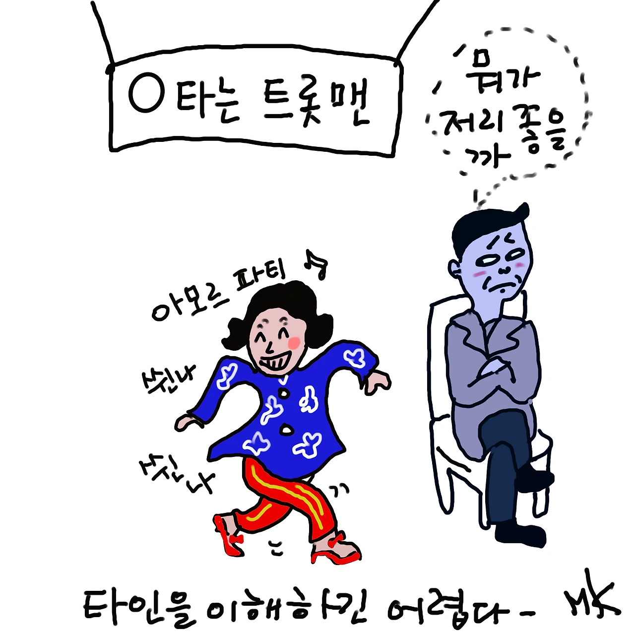 사람들 사이에 있으면 큰 키와 어색한 분위기를 깨려는 어설픈 유머 때문인지도 모르겠다