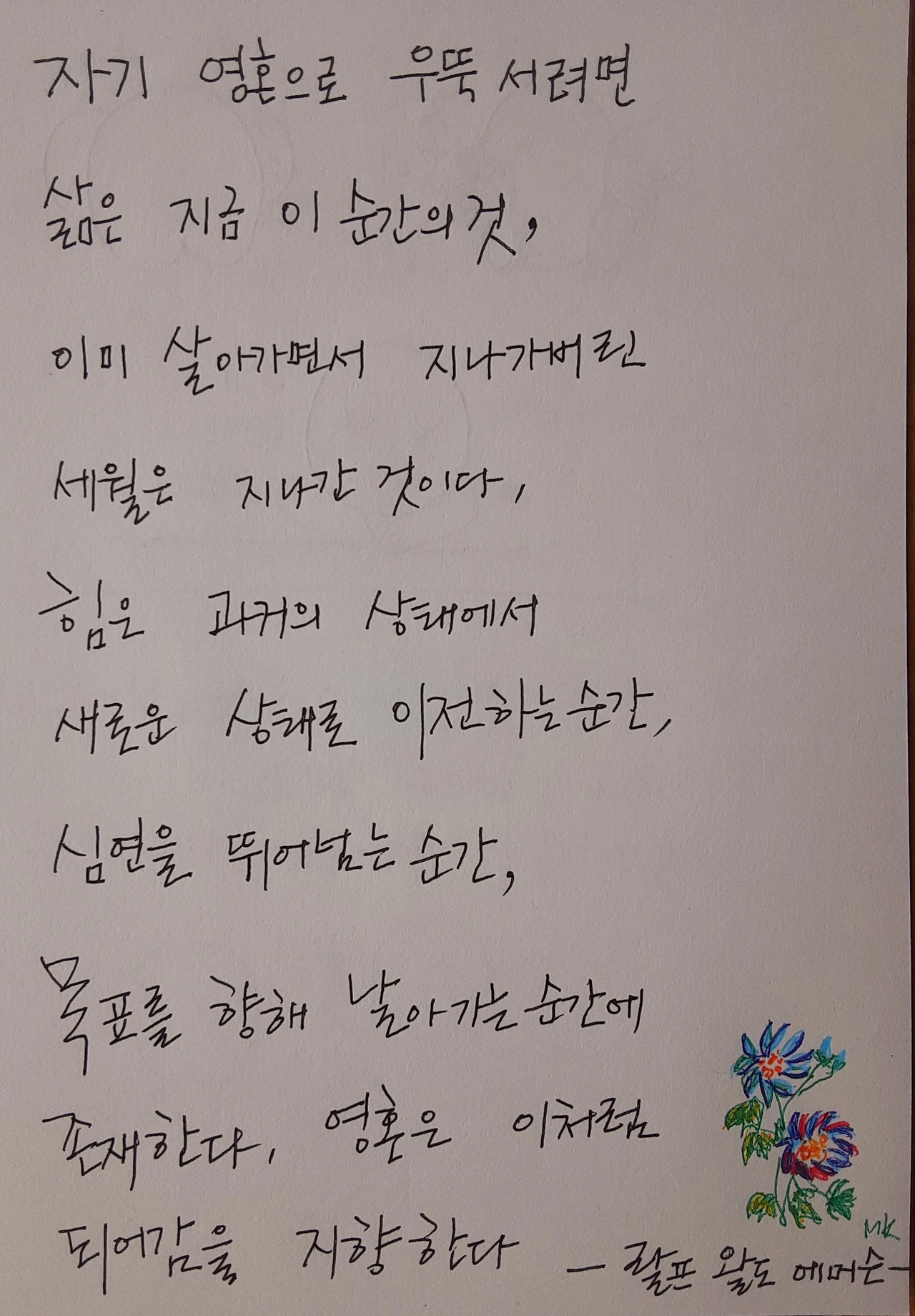 이렇게 과거의 슬픔이 엄습할 때 위로가 되는 좋은 문장이 있어서 필사를 해본다.