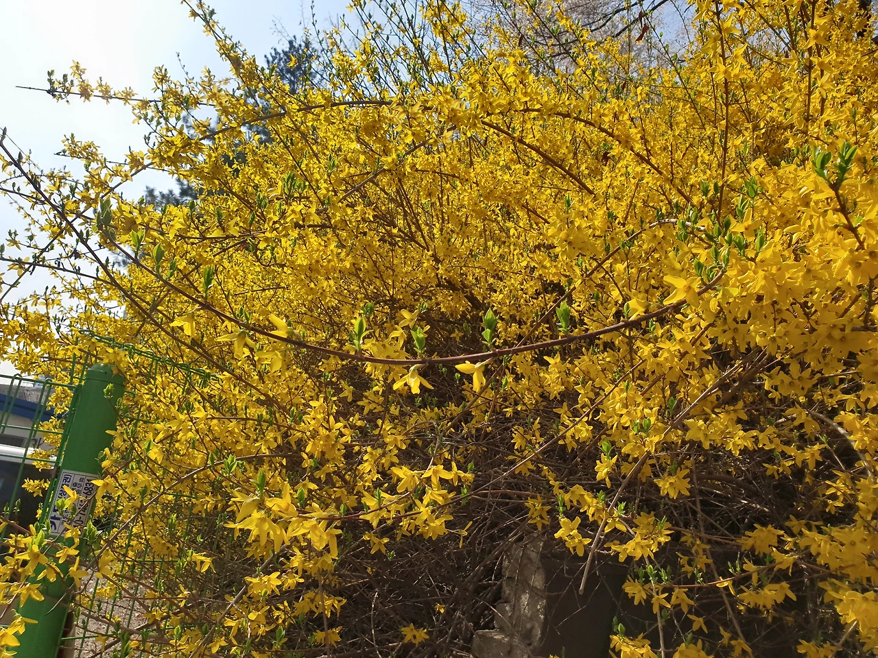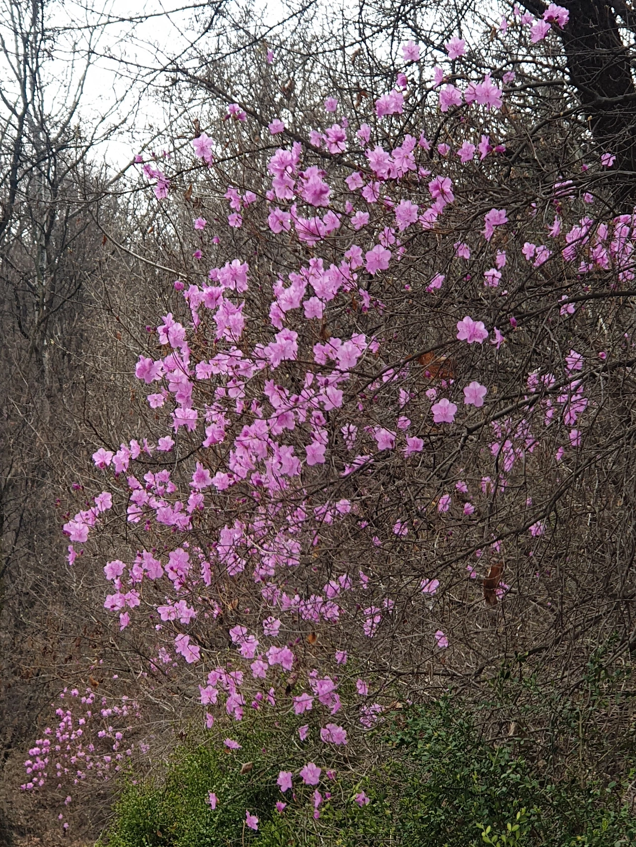 웅크리고 있다가 밖으로 나가니 아파트입구에 개나리가 곱게 피었고 공원으로 들어가니 진달래가 연하게 피었었다.