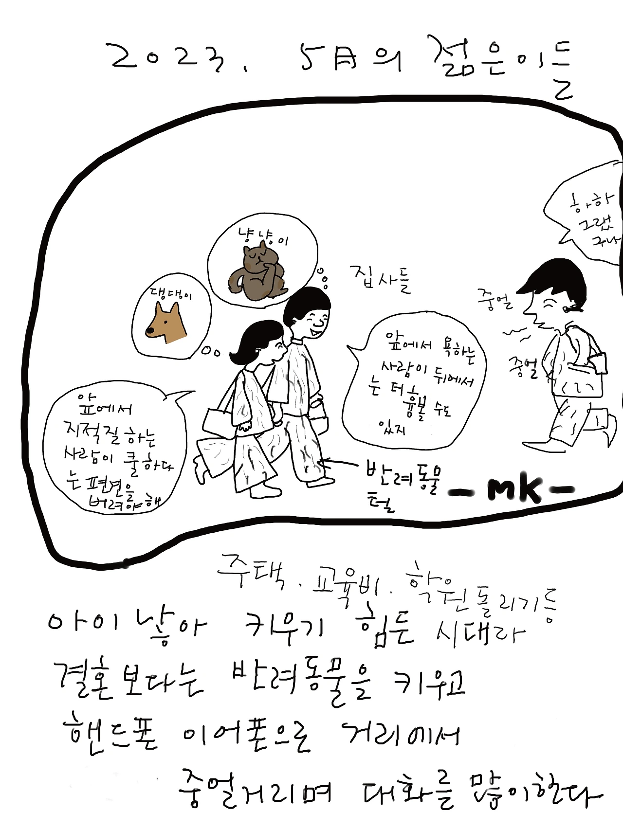 거리를 걷다가 만난 청년들의 모습 중하나였습니다. 젊은이들이 행복해졌으면 하는 바람입니다.
