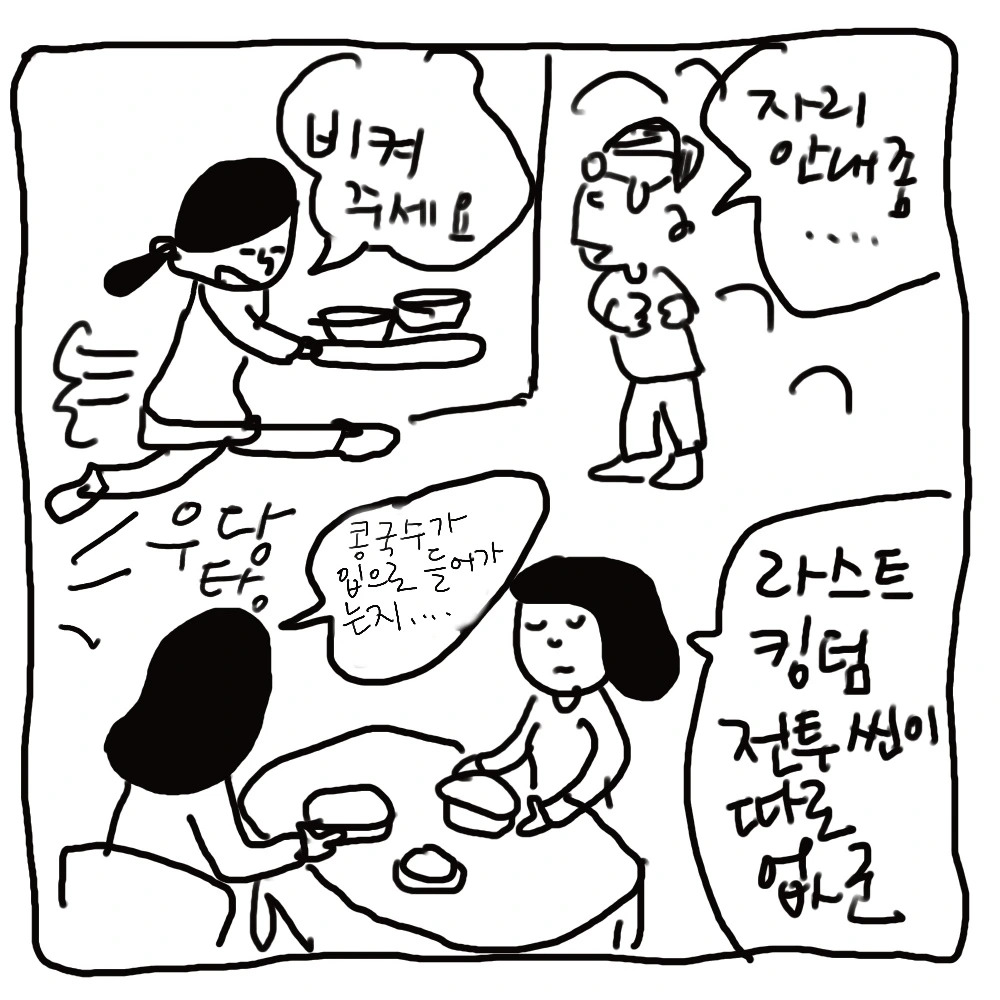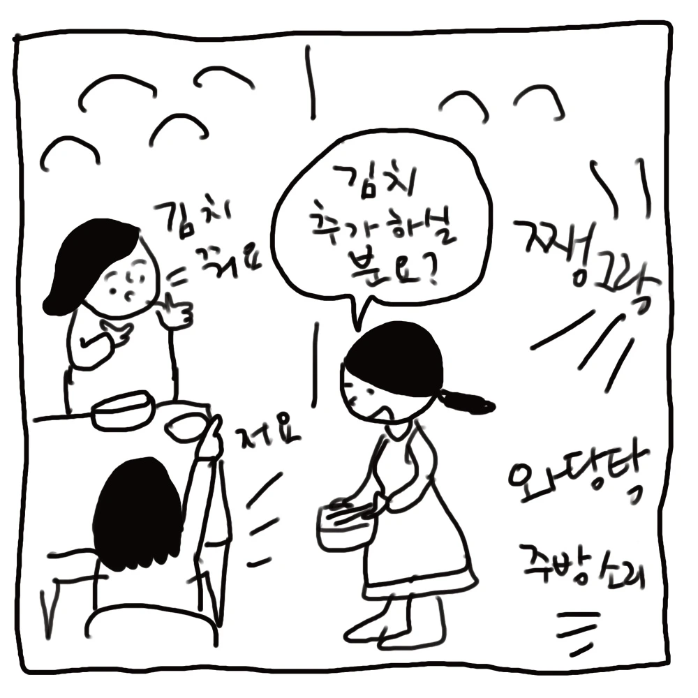 시끄러운 대화소리와 주방의 우당탕 소리로 정신은 없었지만 묘하게 재밌는 점심식사였다.