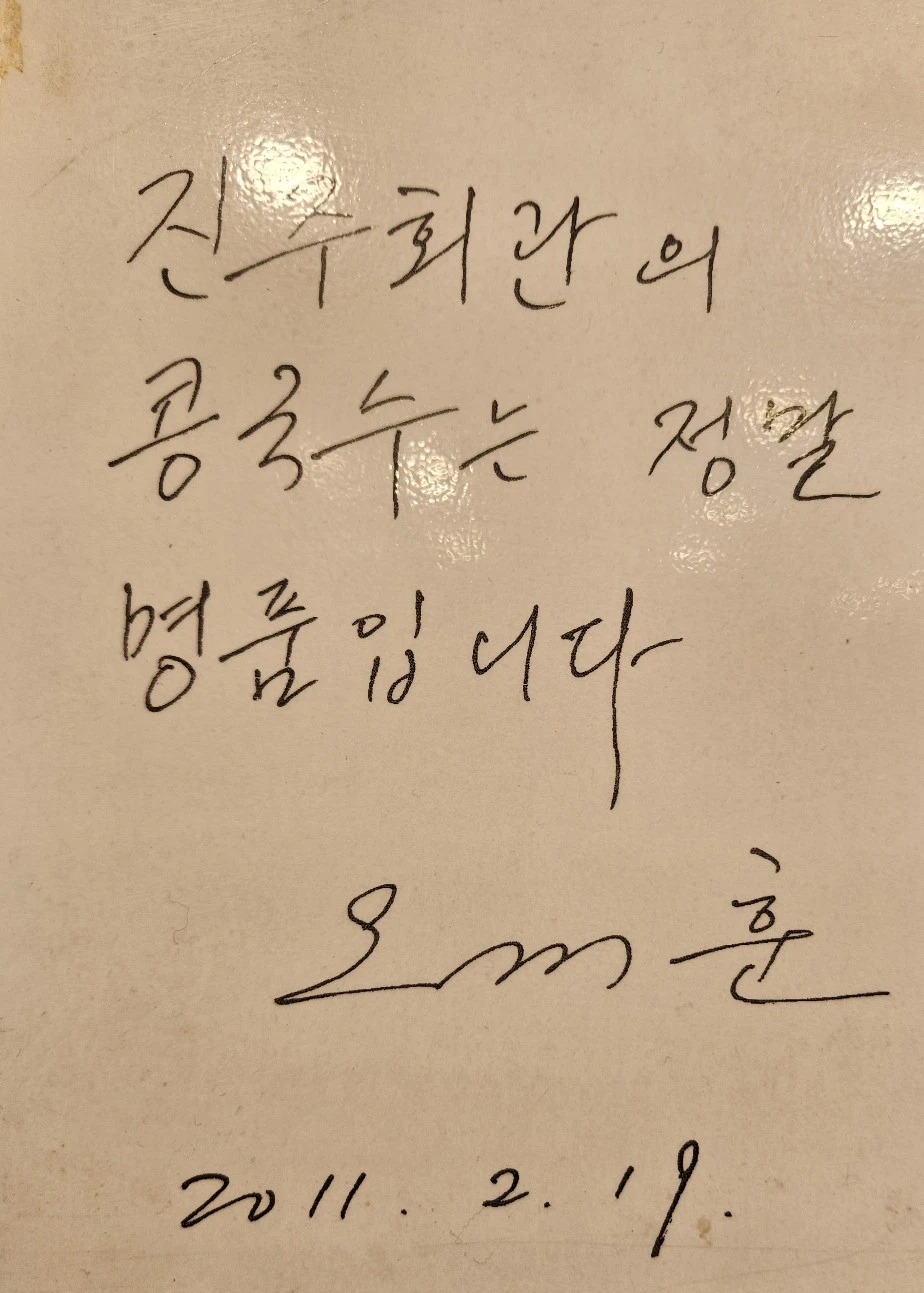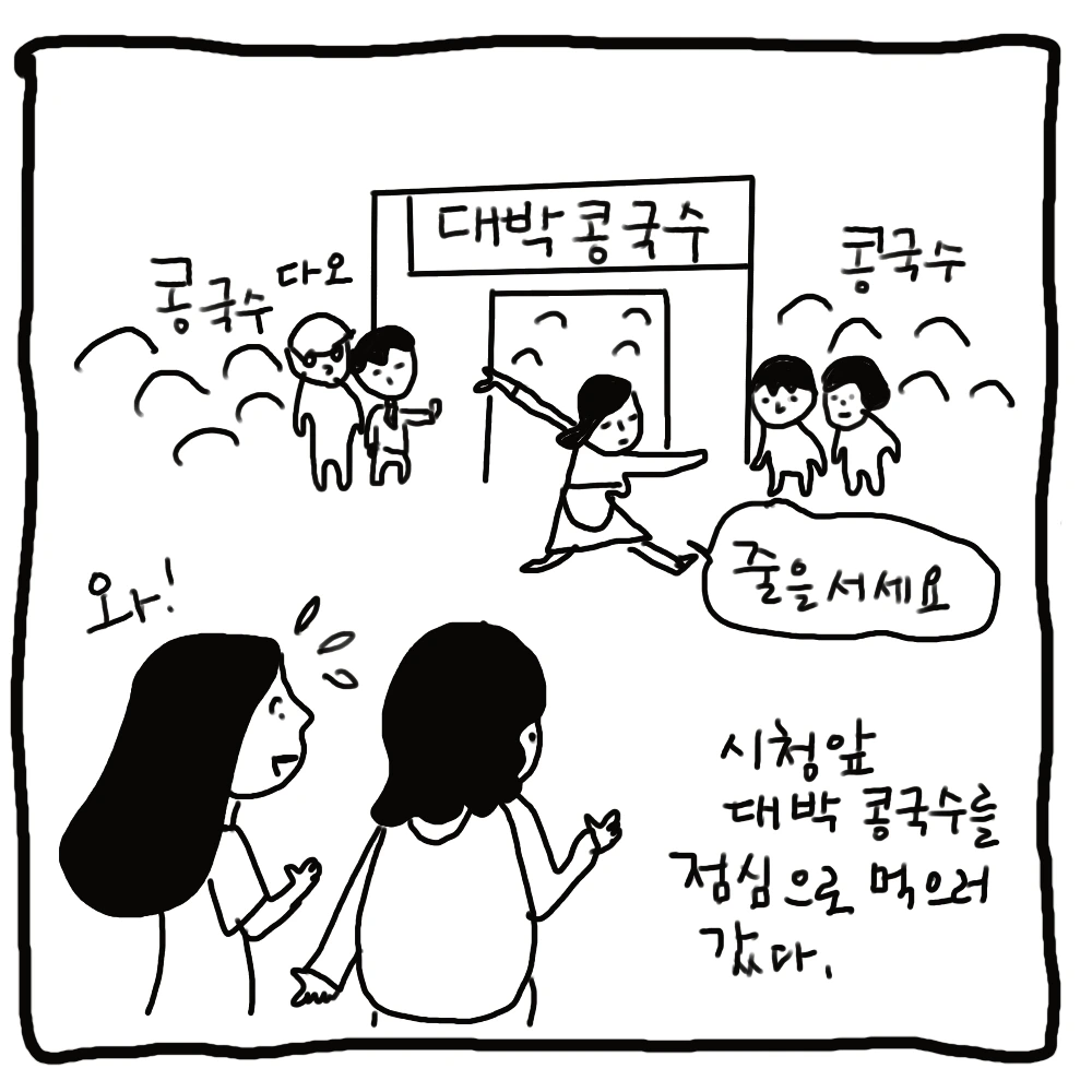 콩국물도 강원도 토종 콩으로 걸쭉하고 직접 담은 배추김치가 일인일접시로 김치가 맛있는 콩국수 집이다.