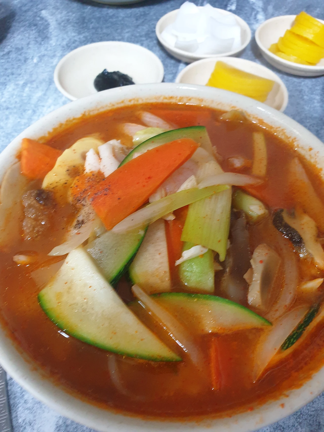 최소의 싱싱한 재료로 풍부한 삼선짬뽕맛은 희한하게 맛이 있었다.