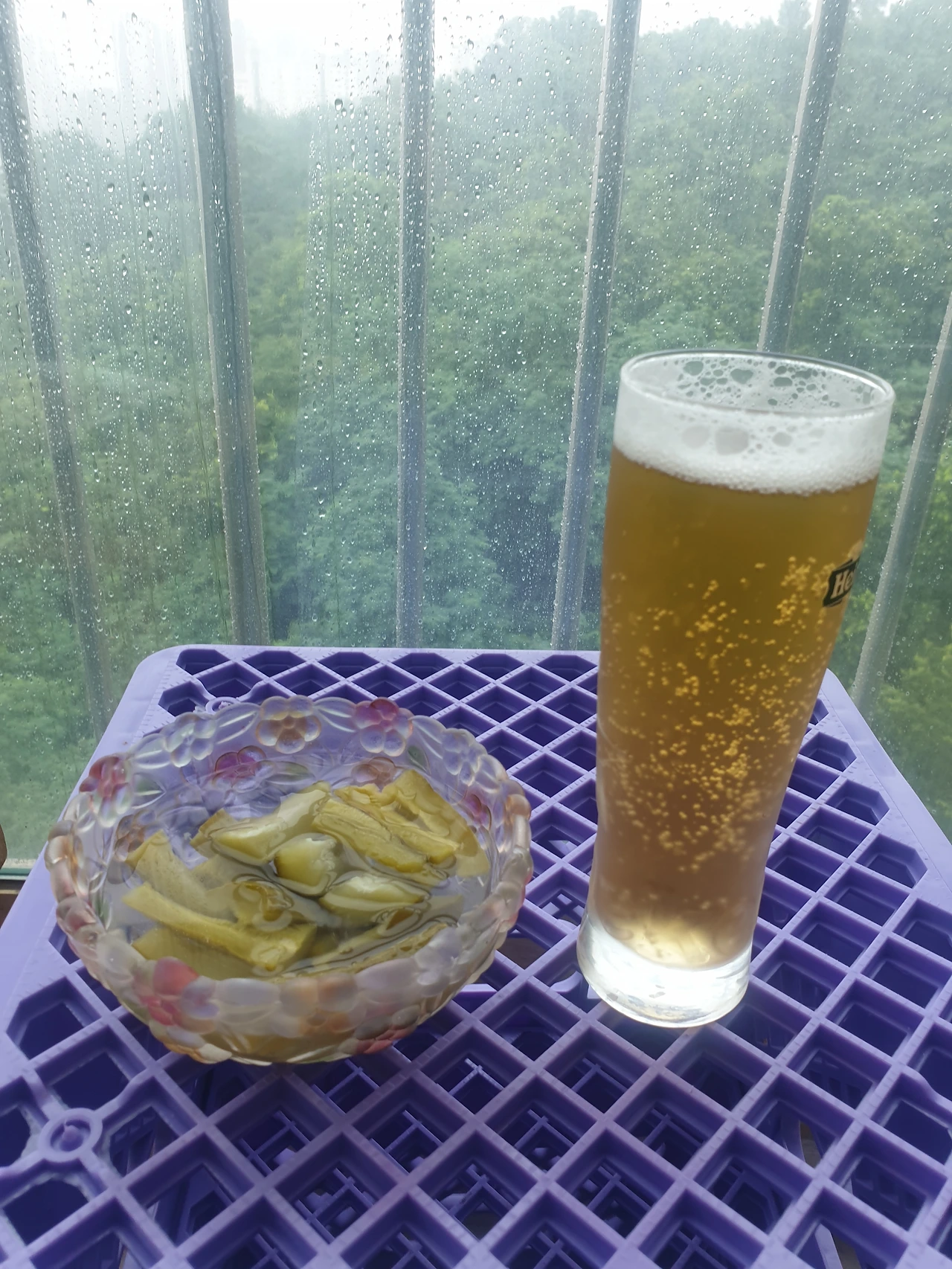 '그나저나 짭짤한 오이지는 맥주와도 꽤 괜쟎네'.