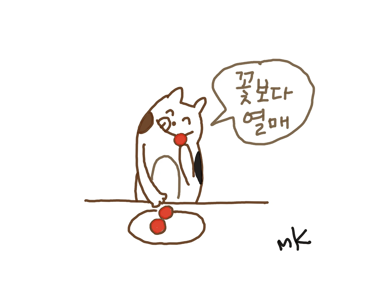 하며 베란다구석의 화분안 방울토마토세알이 볼빨갛게 응원을 하는 것 같다.