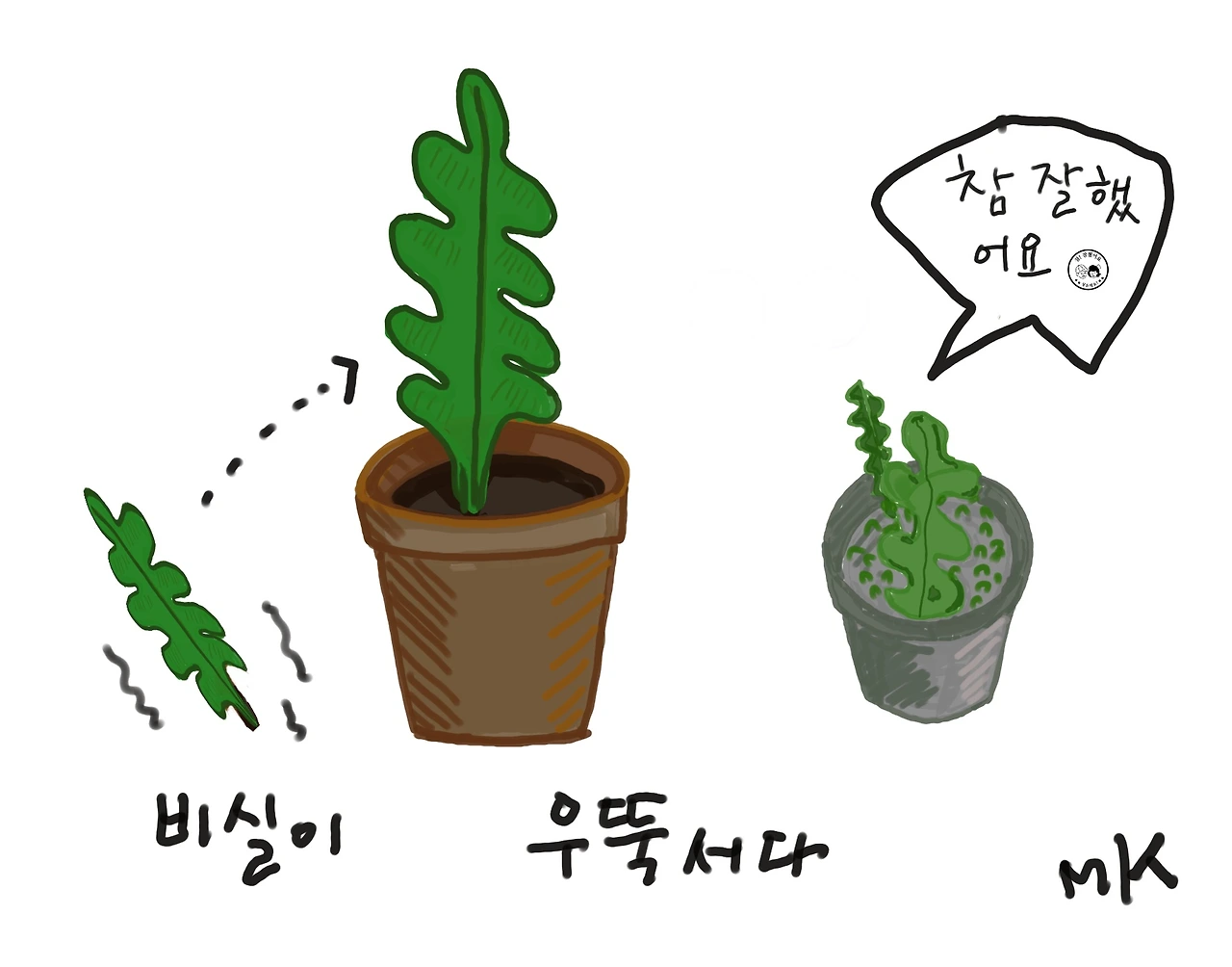 곁다리로 모체에 붙어있는 피쉬본보다 삽목 하여 독립시킨 피쉬본이 더 튼튼해졌다
