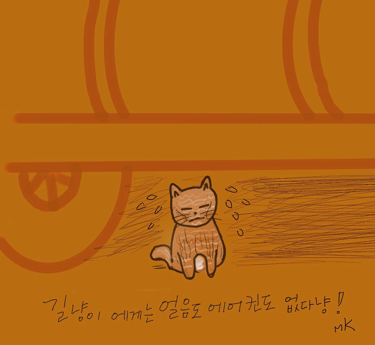 아침에 재활용쓰레기 버리러 가는 길 자동차밑에 앉아 있는 치즈색 고양이 한 마리를 보았다.