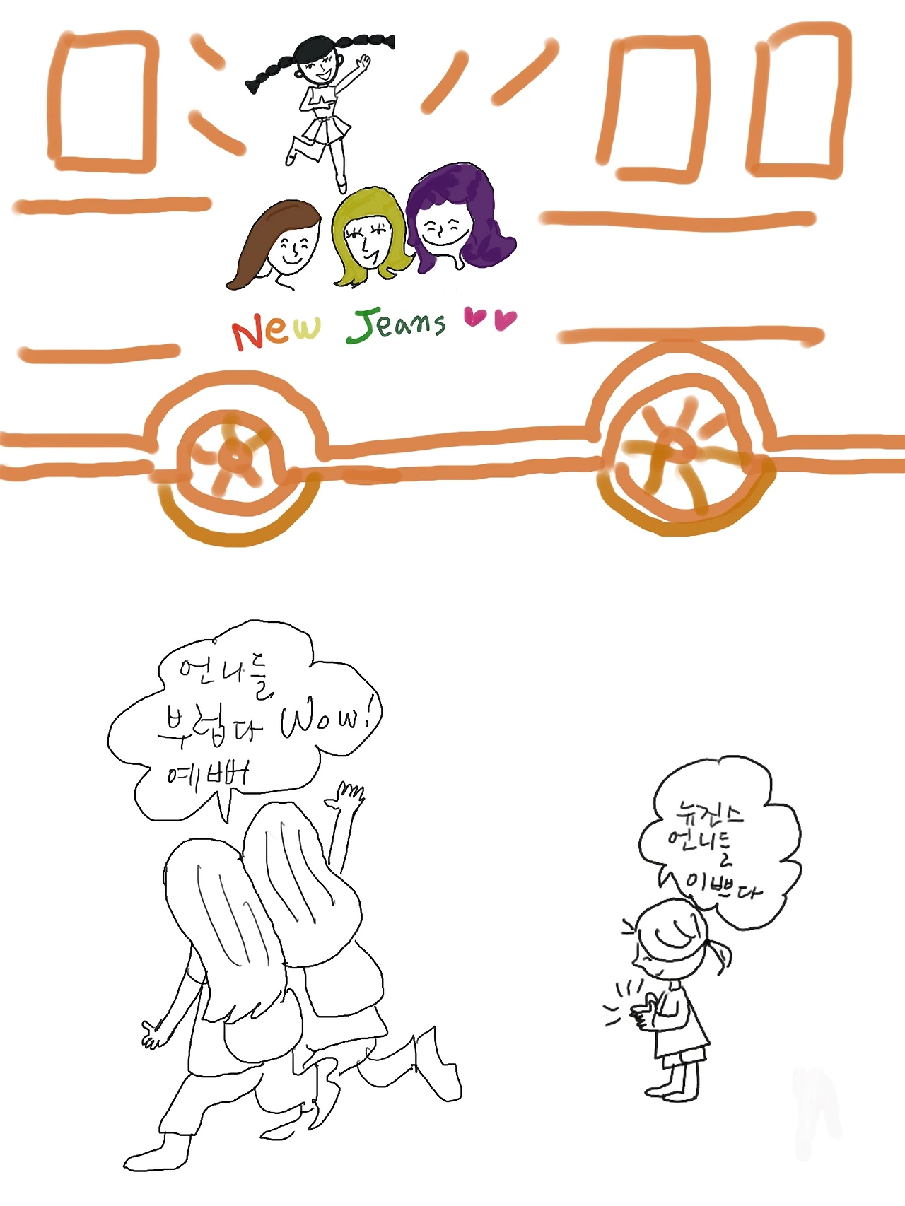 언제부터인가 콜라광고를 비롯해 뉴진스가 광고에 많이 나오니 버스에도 뉴진스 광고사진이 해맑게 웃고 있다.