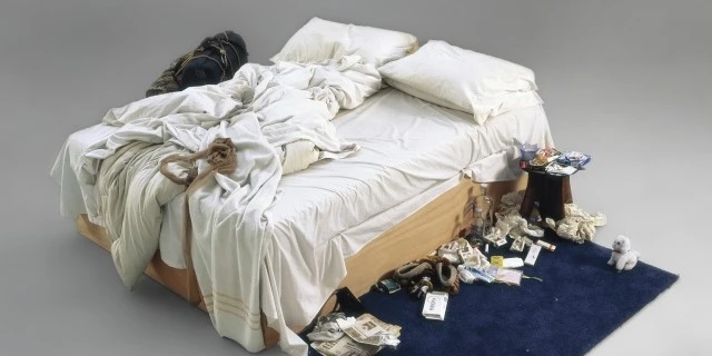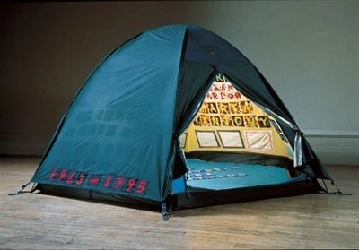 작가는 자신의 이야기를 더러운 침대와 자신과 잔 사람들의 무수한 이름을 텐트 속에 메모로 남겨 놓았다.