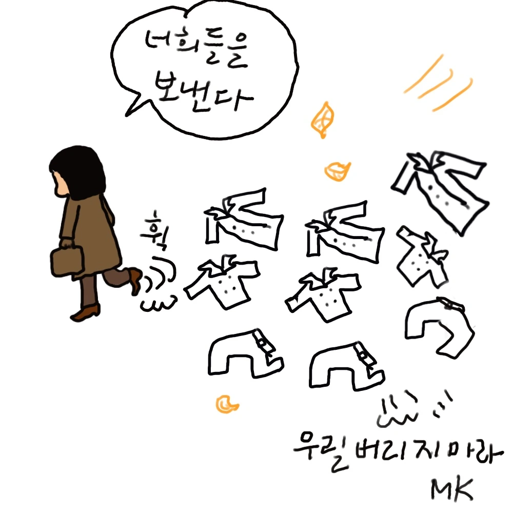 이 옷하나하나에 추억이 있겠지만 옷장 옷무덤에서 꺼내어 '필요한 이 들에게 가거라' 하는 마음이다.