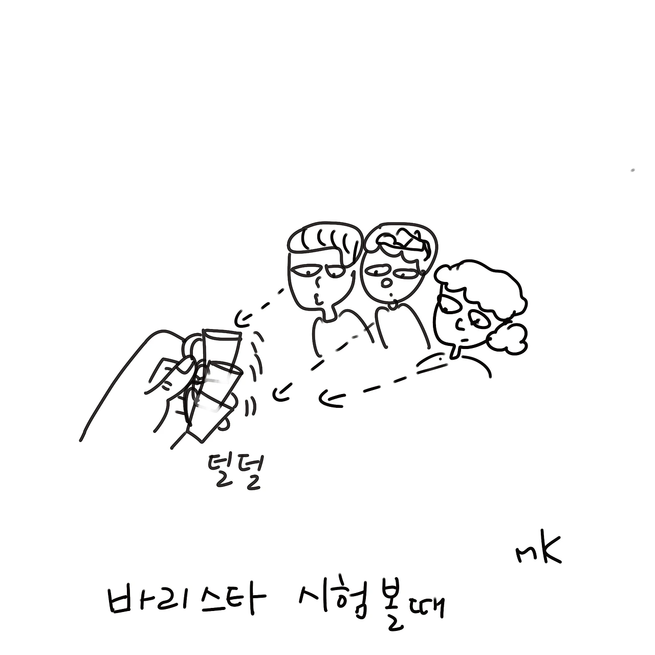 예전의 바리스타 시험 볼 때 사람들의 시선으로 손이 벌벌 떨렸던 게 생각이 났다.