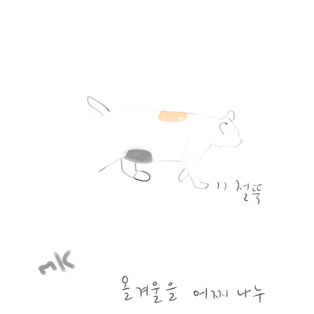 겨울로 이사하는 계절에 길고양이 삼색이가 절룩 걸이며 지나간다.